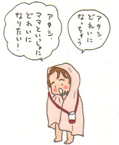幼稚園で作った何かをバスタオルの上からかけて