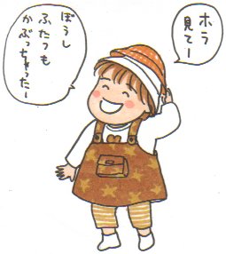 娘ちゃんには小さくなった帽子を