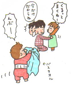 息子くんがマネして自分のバスタオル持ってきたので