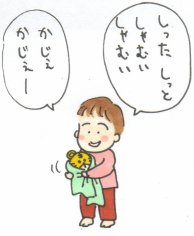 しまじろうにタオルをかぶせてるんでした。